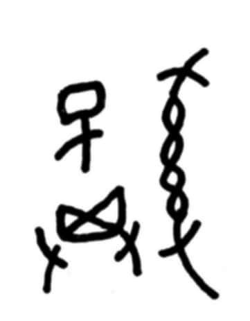 当然,这没什么好大惊小怪的,说到怀孕生子,这是生物性的本能传种繁衍大事,人什么时候在这颗蓝色小行星出现,这事就摆明了存在多久,绝非日后谁才发明发展出来的新方法或新抽象概念,因此,三千年前的甲骨文必然对此知之甚详。事实上,有关怀孕,甲骨文中还有一个更明白、更没争议的字,长这个样子,是女弄璋弄瓦),这就是正格的“孕”字。